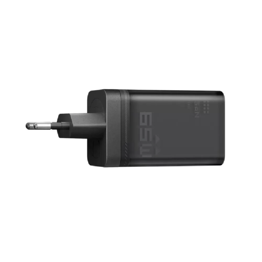 Alimentat prin tehnologia GaN (Gallium Nitride), incarcatorul ofera o putere de pana la 65W. Este echipat cu doua porturi USB-C ce permit incarcare rapida independenta si este compatibil cu protocoalele PD si PPS.