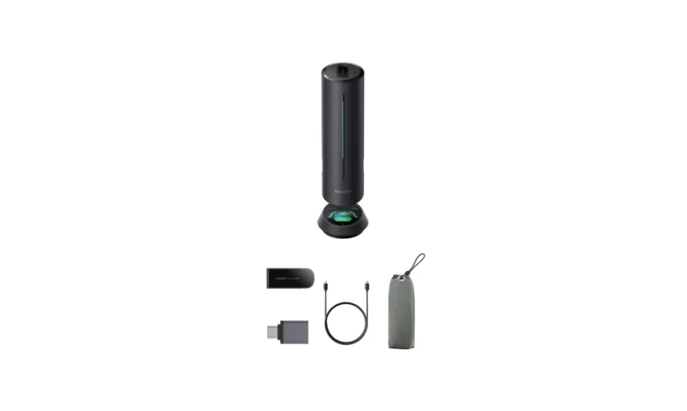 Insta360 Wave este un dispozitiv compact de birou (speakerphone), creat pentru conferințe online, podcasturi, streaming, înregistrare audio și muzică - ideal pentru biroul de acasă, studio sau o sală mică de întâlniri. Designul este vertical, iar baza are controale touch pentru o utilizare comodă.