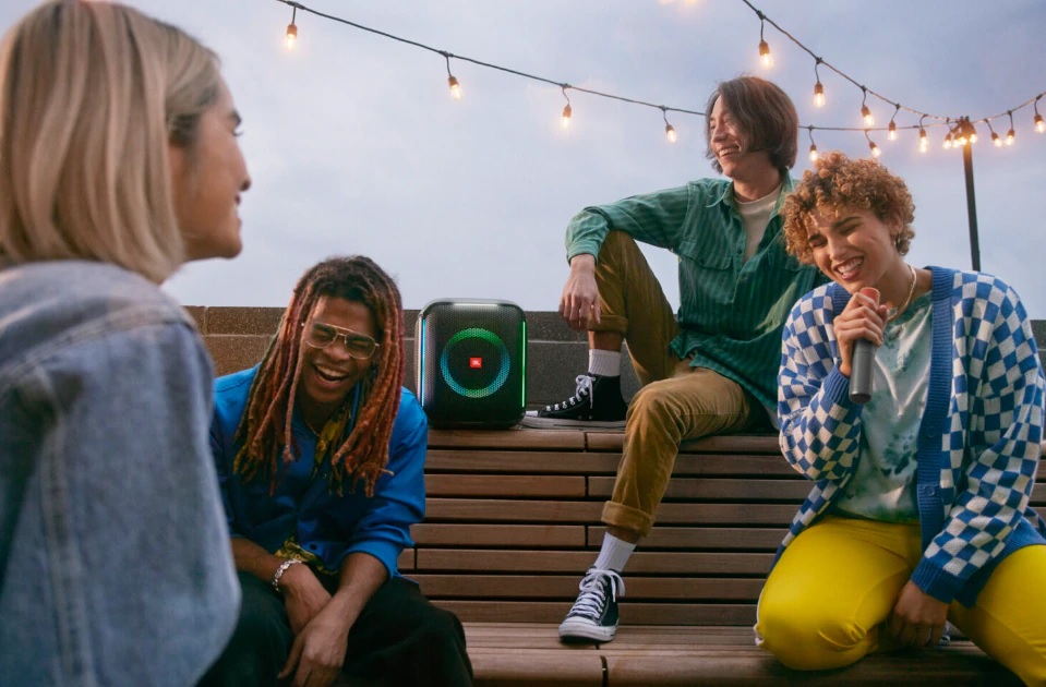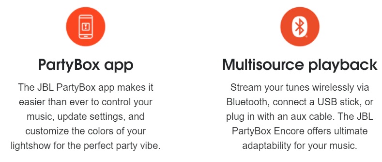 Spectacolul de lumini PartyBox de la JBL face petrecerea ta sa straluceasca cu lumini de club si efecte stroboscopice care se sincronizeaza cu ritmul muzicii tale pentru o experienta audiovizuala extraordinar de captivanta.