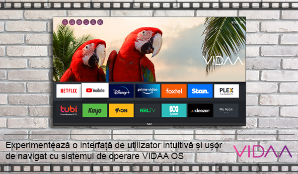 Experimentează o interfață de utilizator intuitivă și ușor de navigat cu sistemul de operare VIDAA OS, care îți oferă acces rapid la aplicații, setări și conținutul dorit.